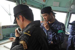 航海中は操艦や機関、戦術だけでなく、ダメージコントロールや防火・防災といった艦の安全を守るための基礎技能も徹底して学びます。