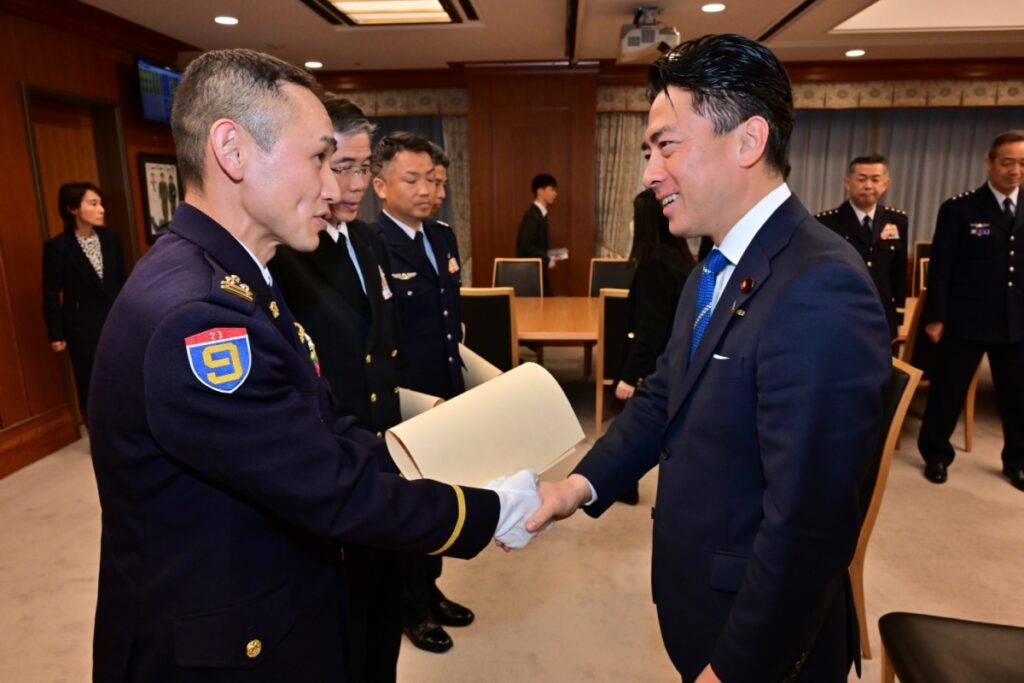 今回の活動は、地域の安全確保に大きく貢献したものとして評価され、小泉進次郎防衛大臣から賞状が授与されました。