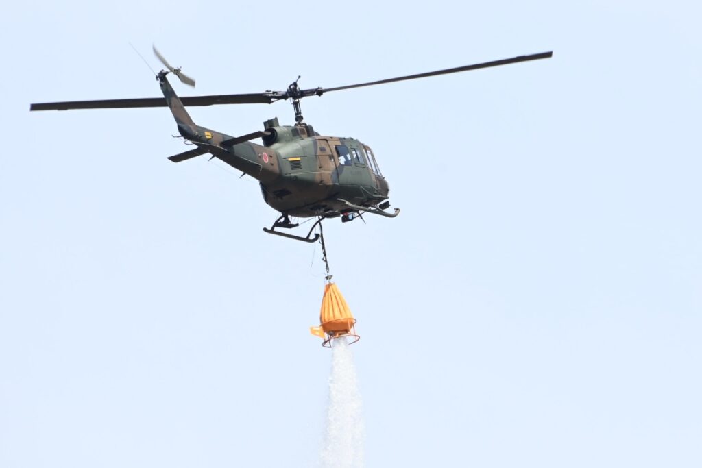 投稿された動画には、多用途ヘリコプター「UH-1」が放水する様子が映っています。