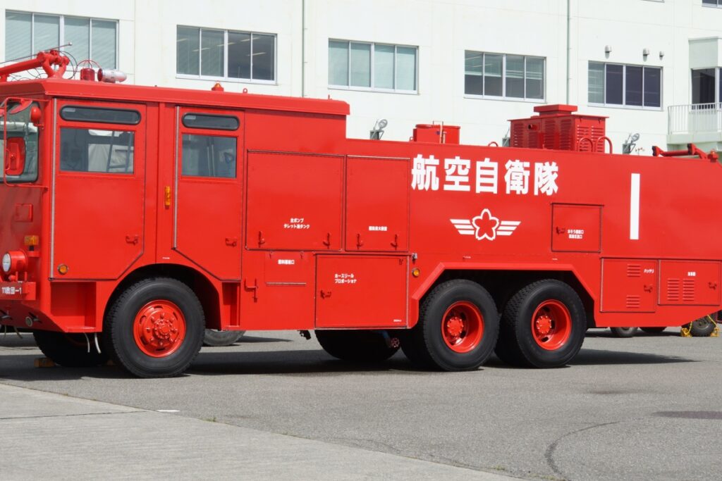 主な業務内容は、航空機の救難消火業務と建物火災消火業務。